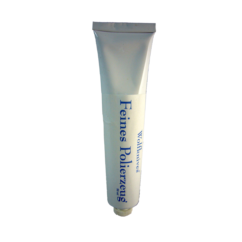 Wolfknives® Feines Polierzeug ist eine feine Oberflächenpolitur die schützt, pflegt und konserviert. Geeignet für Stahl, Edelstahl, Aluminium, Messing, Kupfer, Silber, Gold, Nickel, Chrom etc., 50 ml Tube.