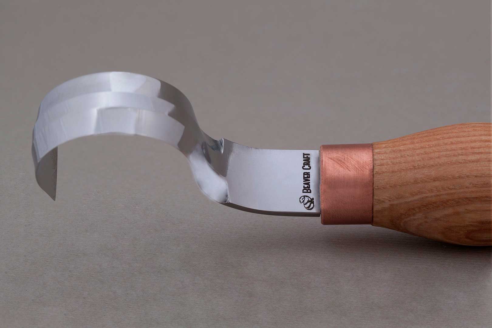Langes Schälmesser SK2long von Beaver Craft mit gebogener, beidseitig geschliffener Klinge für Rechts- und Linkshänder. Durch den langen Griff bringt man mehr Kraft auf das Schnitzmesser, was bei größeren Objekten eine Erleichterung des Krauftaufwandes zur Folge hat. Der Krümmungsradius von 30 mm eignet sich für Schnitzobjekte wie Schalen, Tassen, Löffel und Aushöhlungen. Die Klingenlänge beträgt 5 cm, die Gesamtlänge 36,5 cm und das Gewicht liegt bei ca. 175 g. Die Klinge ist beidseitig geschliffen.