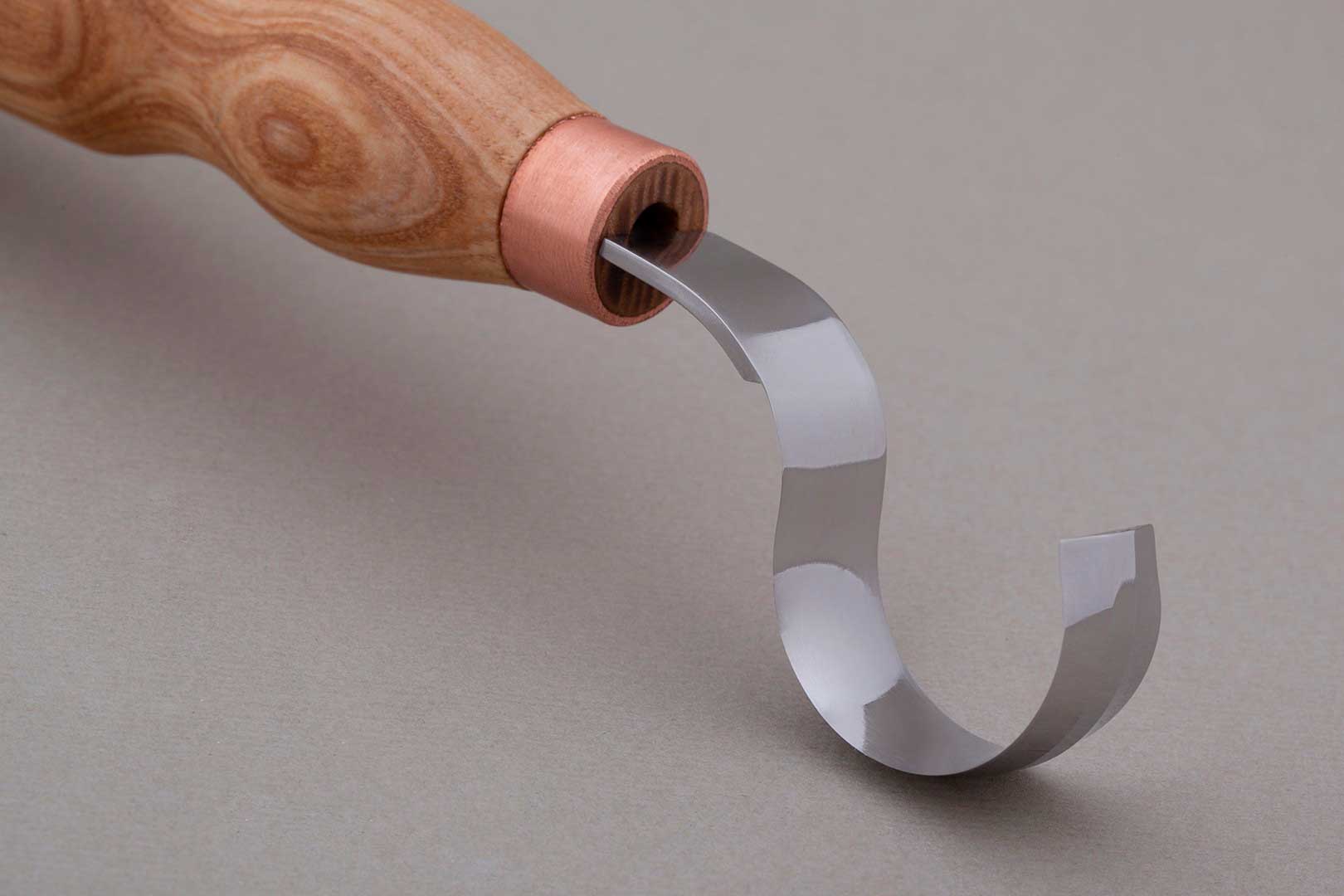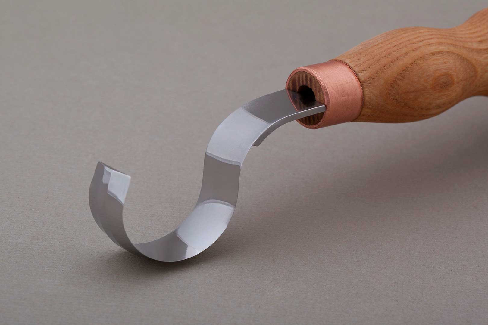 Schälmesser Nr. 164 speziell für Rechtshänder von Morakniv mit einer gebogenen Klinge in einem Klingenradius von ca. 12 mm. Die Klingenlänge beträgt ca. 50 mm bei einer Gesamtlänge von 160 mm. Die gebogene Klinge aus rostfreiem 12C27-Stahl ist besonders für Löffel, Schalen und Hohlkörper geeignet.Mit dem Schälmesser N° 164 kaufen Sie das ideale Schnitzmesser für alle Arbeiten bei Hohlkörpern, Löffeln oder Schalen und Tassen. Mit der gebogenen Klinge haben Sie die Möglichkeit, das Holz auszuhöhlen und schabende Schnitte auszuführen. Die Klinge ist aus schwedischem Sandvikstahl 12C27 geschmiedet, der sich durch seine gute Schärfbarkeit und hohe Standzeit (Härte ca. 59–60 HRC) auszeichnet. Der Griff aus geöltem Birkenholz liegt angenehm in der Hand.