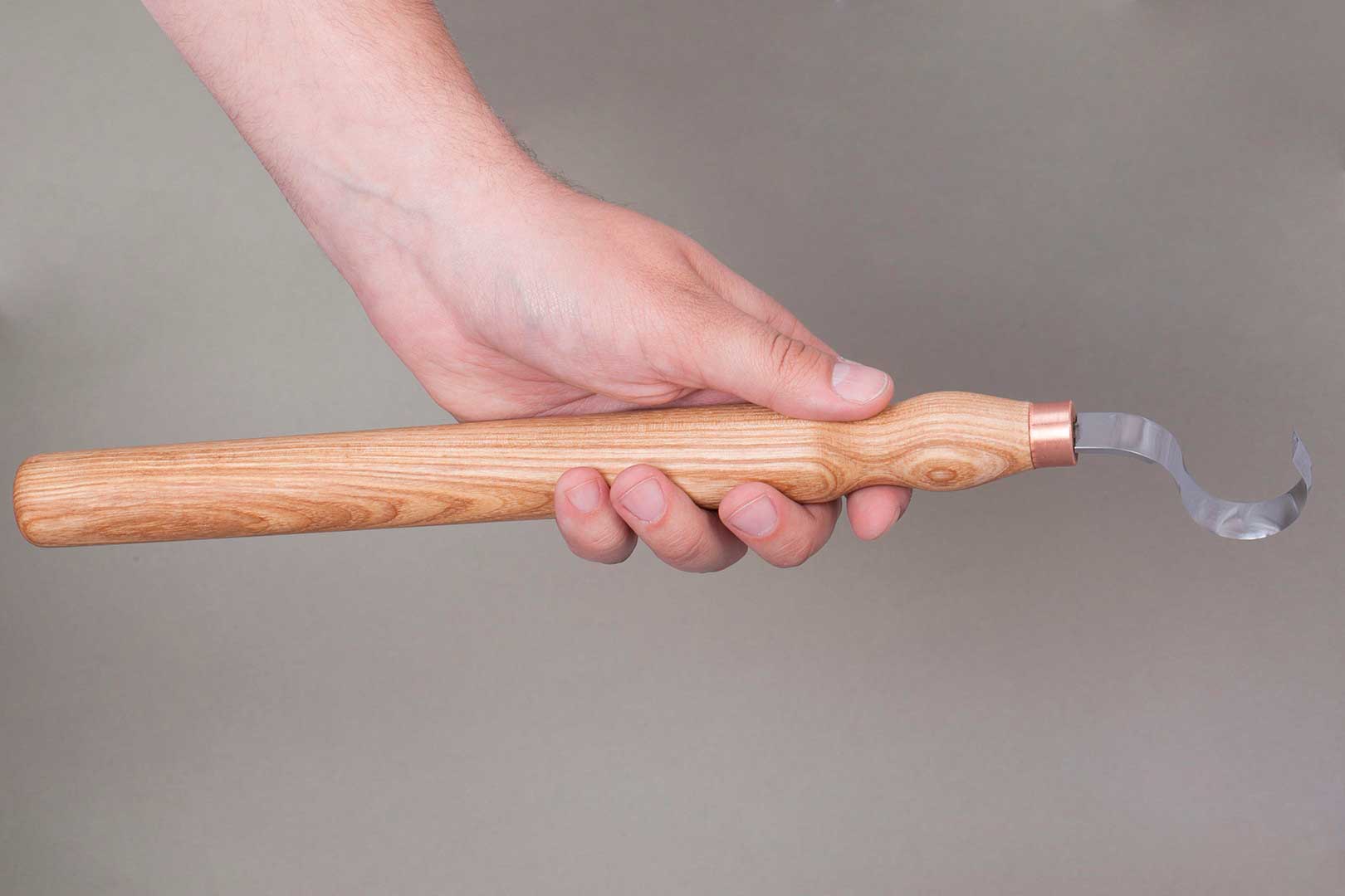 Das Messer ist handgefertigt aus High Carbon Stahl (30MnB5), gehärtet, geschliffen und rasiermesserscharf abgezogen. Durch die Geometrie des Klingenschliffes eignet sich das Messer sowohl für weiches als auch hartes Holz. Der runde Griff des Messers ist aus Eschenholz gefertigt, oberflächenpoliert und mit natürlichem Leinöl behandelt. Das Schälmesser ist sowohl für Rechthänder als auch Linkshänder geeignet.